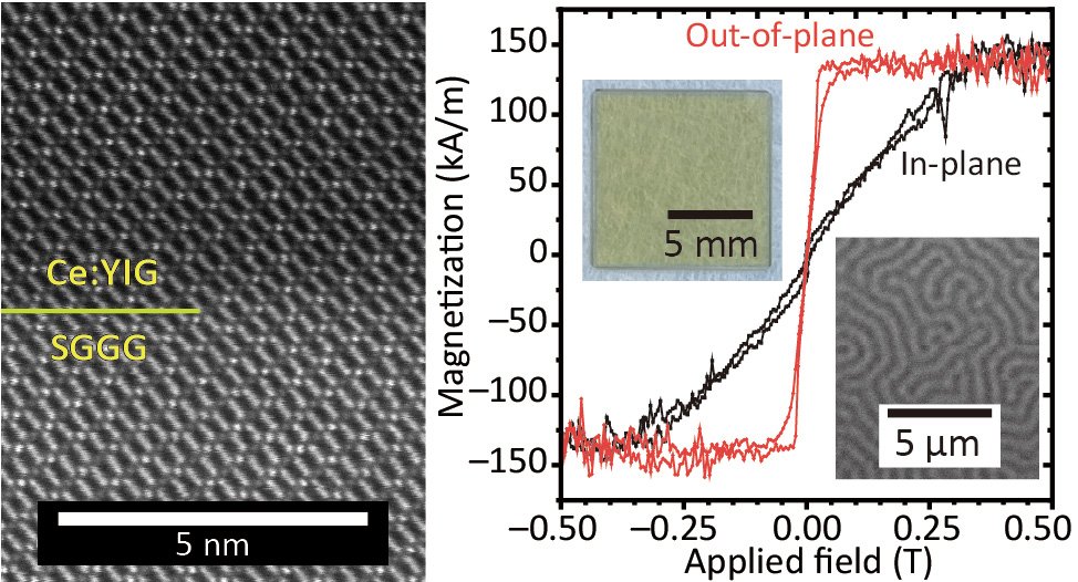 The team overcame this limitation by using ion beam sputtering to deposit Ce:YIG films onto two different substrates that applied opposite types of strain. Surprisingly, both films still displayed strong perpendicular magnetic anisotropy - even though their lattice mismatches (+0.38% and -0.12%) should have produced opposite outcomes.