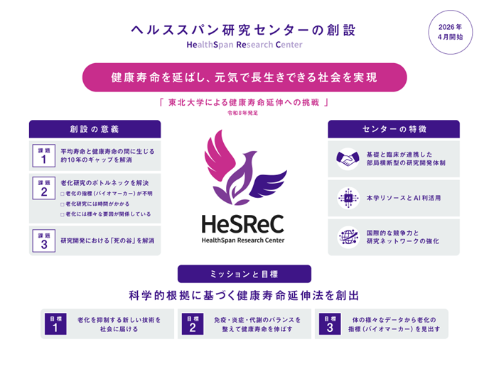 東北大学による健康寿命延伸への挑戦 ヘルススパン研究センター(HeSReC)が始動 ―健康寿命を延ばし、元気で長生きする社会の実現へ―